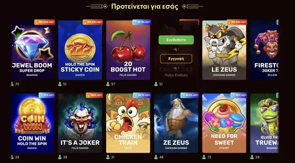 Προσφέρουμε περίπου 10.000 τίτλους σε πολλές κατηγορίες, με τους κουλοχέρηδες ως βασική εστίαση και ένα δυνατό μείγμα επιτραπέζιων και live μορφών. Τα slot παιχνίδια μας έχουν αξιοπρεπή ποσοστά RTP, γύρω στο 95%, και κάθε σελίδα παιχνιδιού δείχνει βασικά χαρακτηριστικά ώστε να κατανοείτε τη μεταβλητότητα και τους μηχανισμούς bonus. Αν θέλετε να παίξετε online κουλοχέρηδες, θα βρείτε κλασικά, σύγχρονα video slots και κυκλοφορίες με πολλά features, καθώς και επιλογές τζακπότ για μεγαλύτερη προοπτική κερδών. Για παίκτες που προτιμούν στρατηγική, προσφέρουμε επίσης επιτραπέζια παιχνίδια όπως ρουλέτα, μπλάκτζακ, μπακαρά, video poker και άλλα.